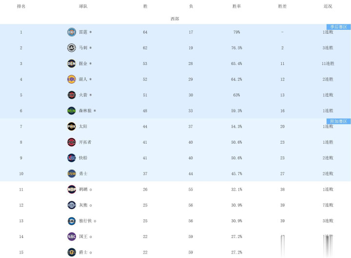 北京时间4月11日,NBA常规赛又结束了多场比赛,这其中包括了湖人队、掘金队、火箭队等均有出战,西部的形势也逐渐的明朗起来,我们来看一下这几场西部的主要比赛——