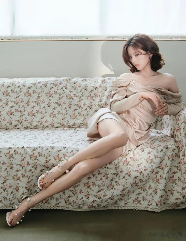 “欲”的一面则表现在她高挑匀称的身材,头身比优越,双腿修长。但这种“欲”不是通过刻意暴露或挑逗来表现的,而是通过她精致的妆容、得体的穿搭以及偶尔流露出的、与她天真面孔形成反差的小女人姿态来展现的。