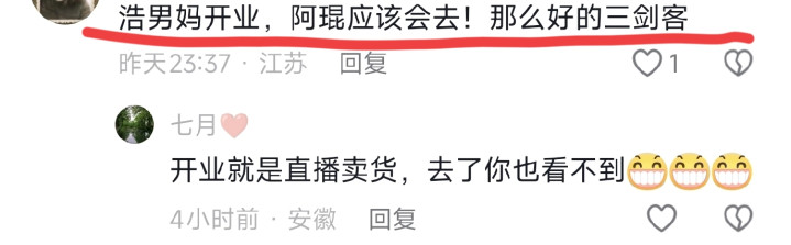 就在昨天浩男战友阿琨留言区出现很多给他留言的人因为大家都知道许妈公司5号开业,阿琨也曾感谢过浩男是因为浩男他才能走上直播带货这条路 所以很多网友都希望阿琨能到场