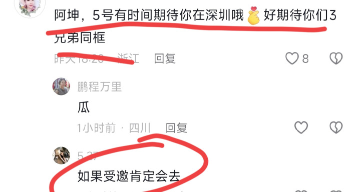 基本上阿琨账号留言区都是在劝说阿琨去现场,都想看到他们一块同框
